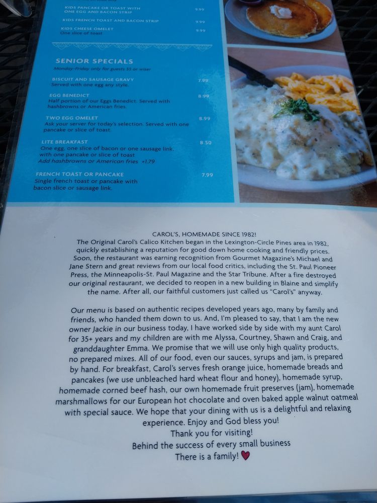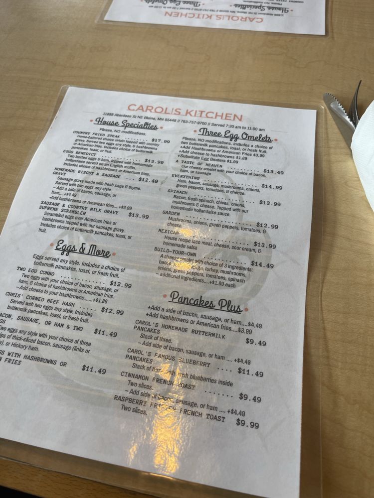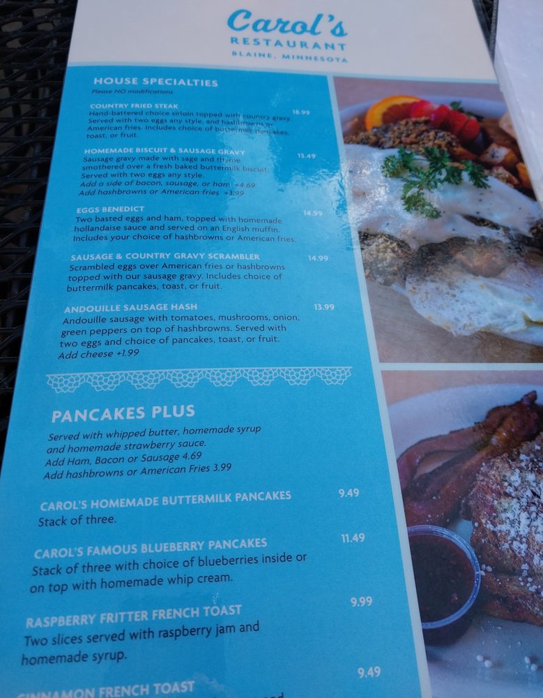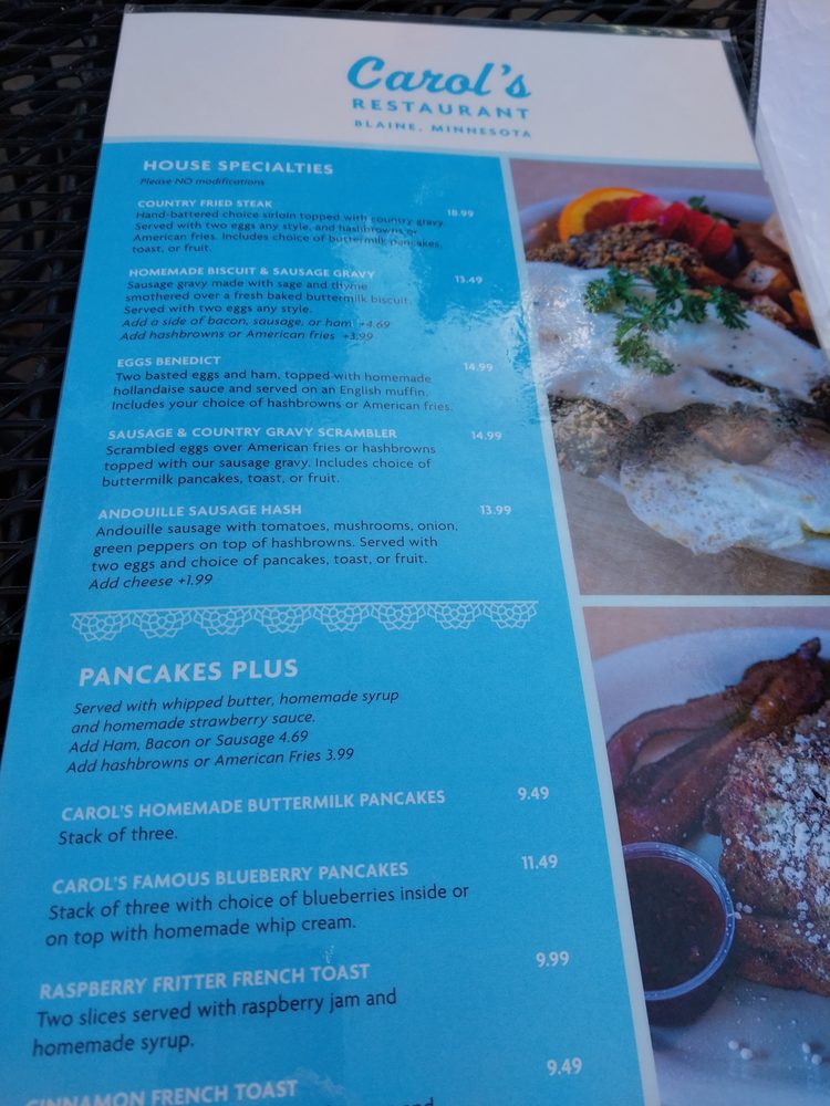 Welcome to Carol's, a delightful dining spot located at 11888 Aberdeen St NE Blaine, MN. Specializing in salads, American cuisine, and breakfast & brunch, Carol's offers a range of amenities including takeout, delivery, and outdoor seating. Customers rave about the friendly staff, delicious food, and comfortable atmosphere. From blueberry pancakes to country fried chicken, each dish is thoughtfully prepared and bursting with flavor. Don't miss out on the Taste of Heaven omelet or the mouthwatering Reuben sandwich. With options for everyone, including vegetarian and gluten-free choices, Carol's is the perfect place for a family meal or a casual get-together with friends. Whether you're craving a hearty breakfast or a tasty salad, Carol's has something for every palate. Stop by and experience the culinary delights of this hidden gem in Blaine, Minnesota.