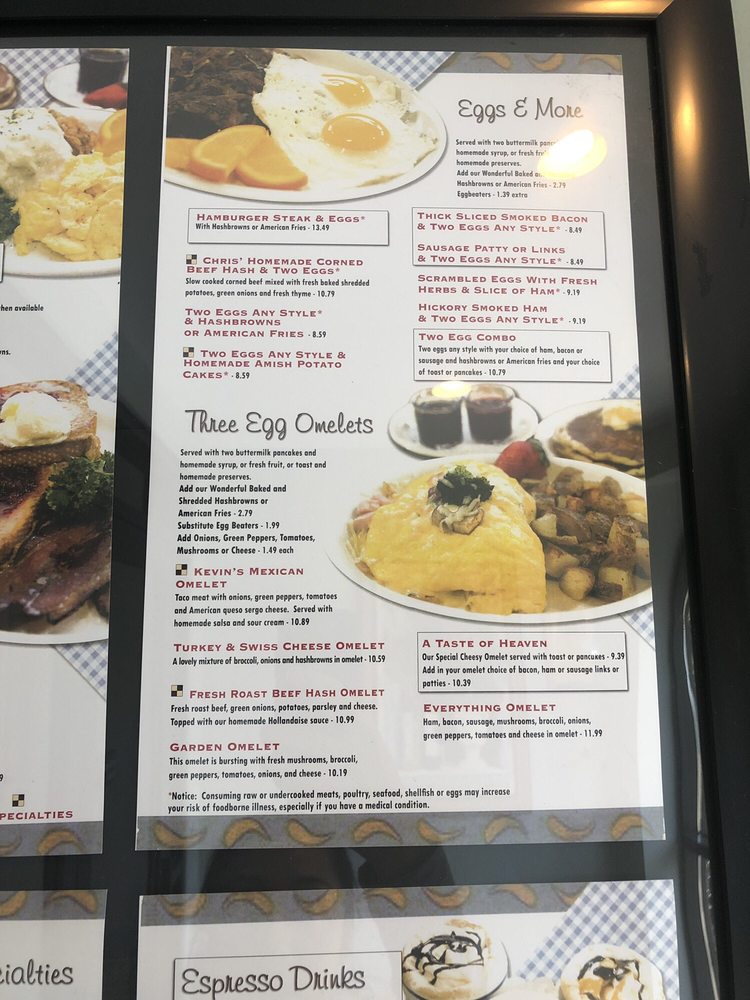 Ham, turkey, over hard egg, cheese, & homemade raspberry preserves on the side. Served on our raspberry fritter french toast.